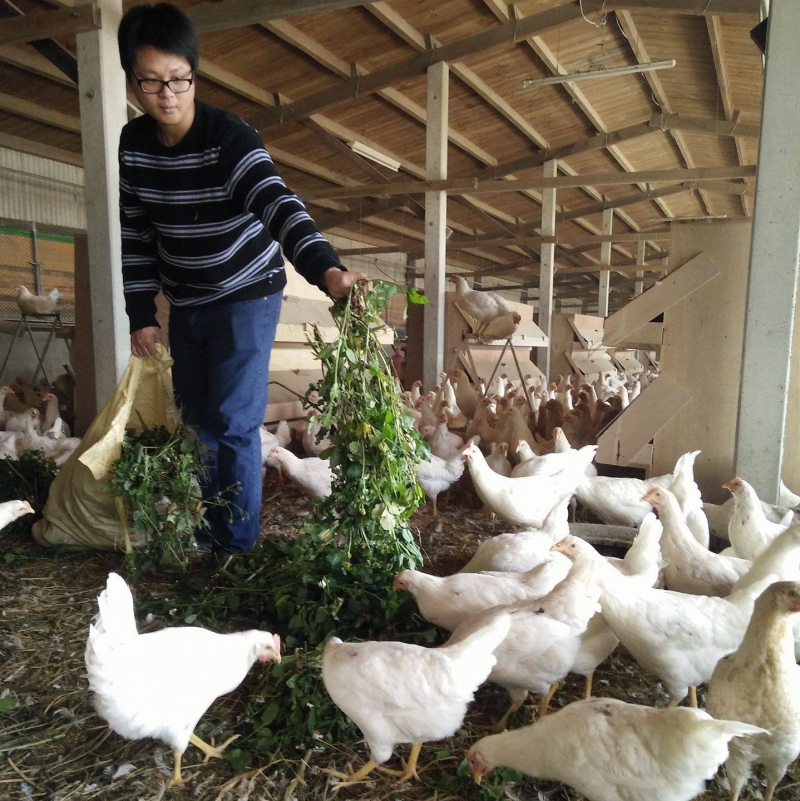 除此之外,更以天然中草藥配方比例(青草、咸豐草、南美水丁香、牛筋草、金午時花)、天然綠藻、天然益生菌、牛樟芝菌絲體等營養品皆能讓每隻母雞增強抵抗力,促進新陳代謝,減少疾病發生,每次產蛋結果,效果顯著。並且每隻母雞因為營養足夠的補充也藉著充分的活動空間皆能利用「棲息架」跳上二樓高的高度,稱之為「二樓雞」。故以此飼養方式來看,無論是蛋殼厚實度或蛋白、蛋黃紮實度上可說是特級蛋品,無懈可擊。且在有機農地種植玉米、葉菜類、狼尾草(牧草)將雞舍打造成一個小型的自然生態循環,達成與土地共存共榮的平衡。並與有意發展有機農產品的社區共同行銷。