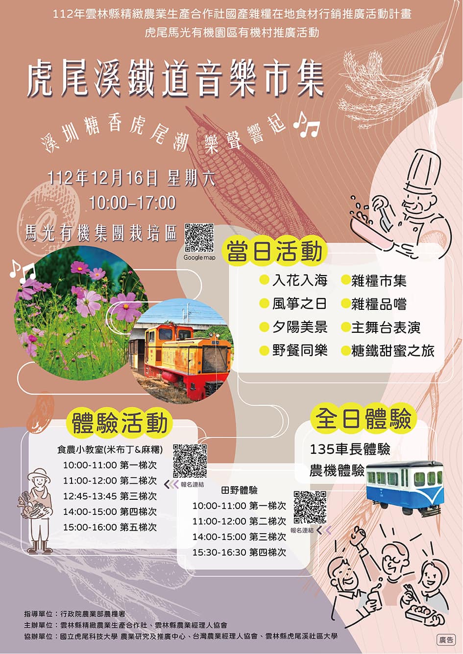 歡迎大家來參加,逛逛全台灣西半部最大虎尾馬光有機栽培區,一起享受這個難忘的雜糧音樂市集吧!![]()