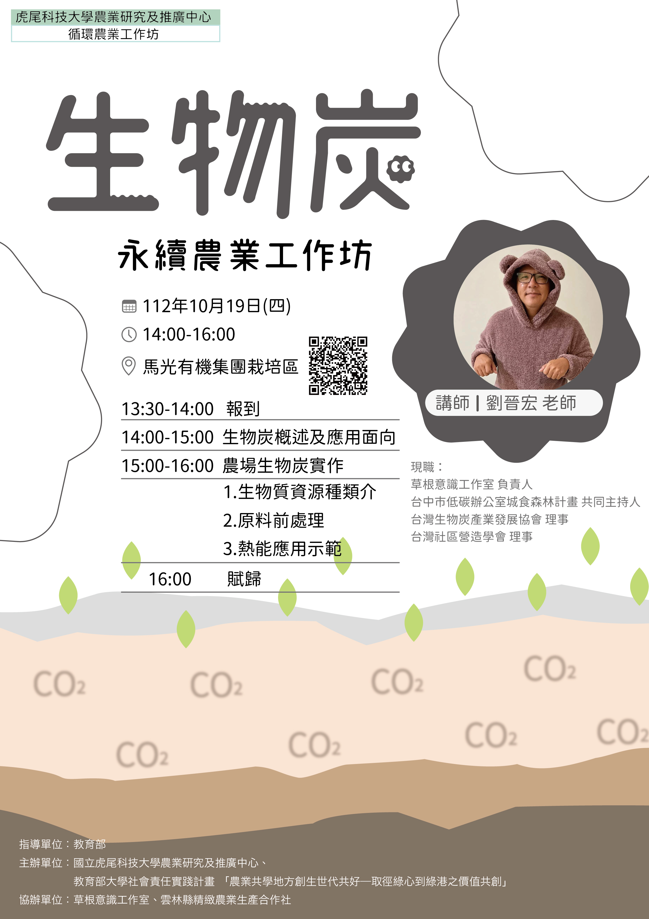 這場工作坊將教您用簡易設備在自己的農場製作生物炭,讓廢木枝變黃金,生物炭可做為改善土質、增加土壤孔隙,可助於農作物生長,又能在農場內做循環使用。