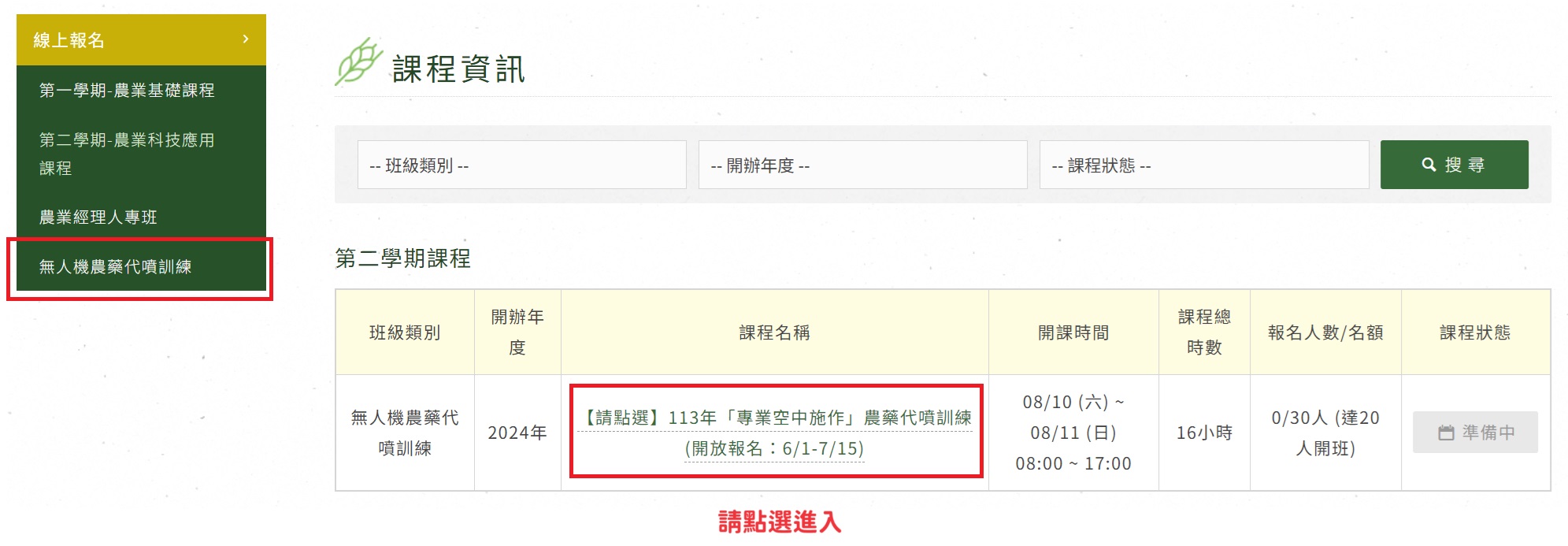 請見『課程資訊』→『無人機農藥代噴訓練』