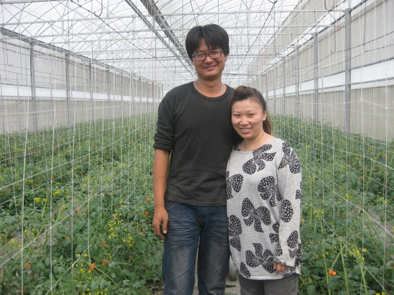 今年103年陳哲興和王靖婷倆夫妻第一次自己種植小番茄,在之前都是幫家裡顧水稻,家裡是做六輕外包商的陳哲興,因為身體出狀況,想說回來種田,目前夫妻倆是邊上班邊種田,現在溫室搭下去,目標是先把成本給賺回來,番茄是高經濟作物,能夠一直採收,於是就先選擇種小番茄。