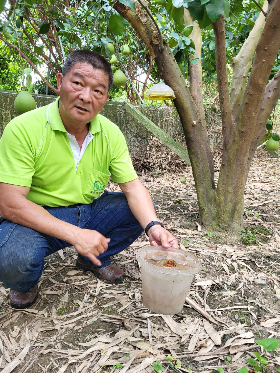 對於東方果實蠅的「滅雄處理」賴永源對此侃侃而談,在育果實期這部分佔據重要的一環,利用甲基丁香油進行大量誘雄蟲的方式,當雌蟲找不到雄蟲交尾時田間族群逐漸降低。令農民頭痛的紅蜘蛛的問題在大哥的手中也是迎刃而解,除了要達到防治病蟲害還要兼顧維護生態平衡永續環境,大哥使用自家製作的氨基酸裡面有含大量的水解蛋白,因為紅蜘蛛本身沒味蕾,所以聞到味道會不斷地吃直到撐死。